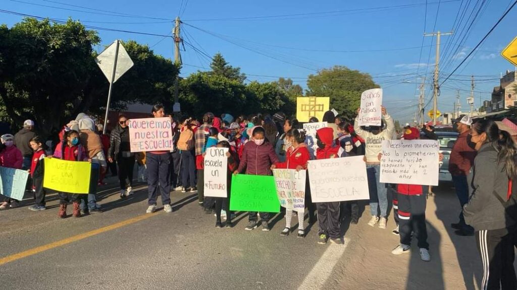 Exigen reconstrucción de escuela en La Cruz cerrando carretera