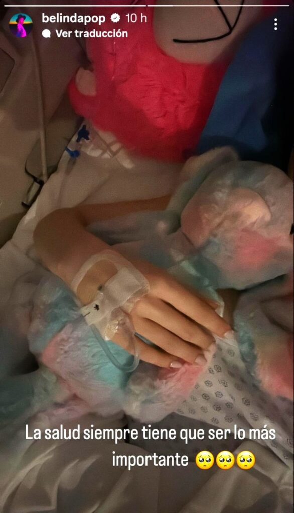 Minutos después del comunicado; Beli compartió con sus seguidores de Instagram una foto en la que aparece en una cama de hospital recibiendo suero destacando que lo más importante es la salud, y aunque hasta el momento no se ha detallado la razón de su hospitalización.