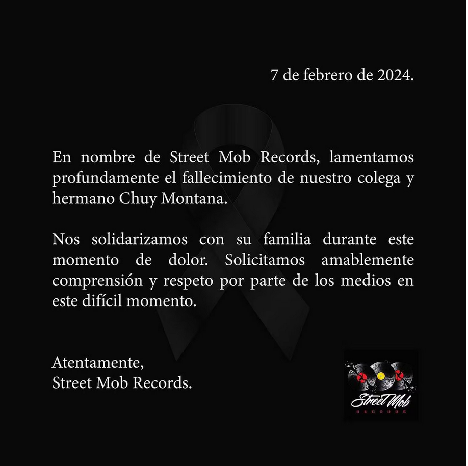 El artista comenzaba sumando fama en el regional mexicano desde el 2023 lamentablemente el fallecimiento de Jesús Cárdenas Velázquez conocido en el medio artístico como Chuy Montana fue confirmado por parte de la disquera Street Mob Records por medio de una publicación en sus redes sociales.