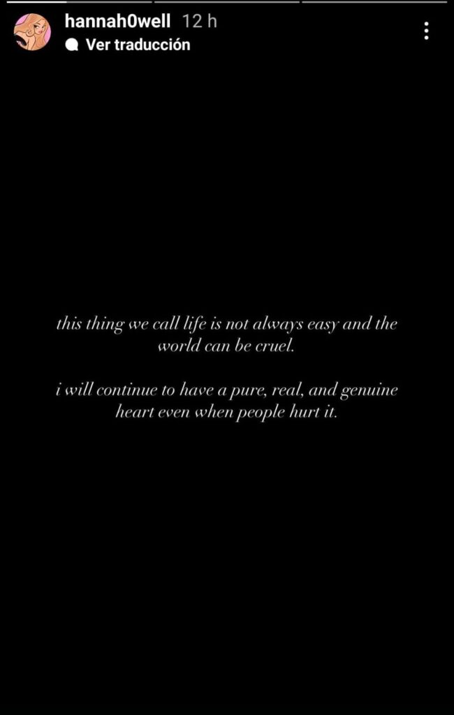 Palabras que según los fans podría tratarse de su relación con Peso Pluma, pues tras esto, los mismos usuarios han corroborado que la joven influencer ya no sigue en sus cuentas al intérprete de corridos tumbados, aunque él continúa manteniendo a Hanna entre sus seguidos.