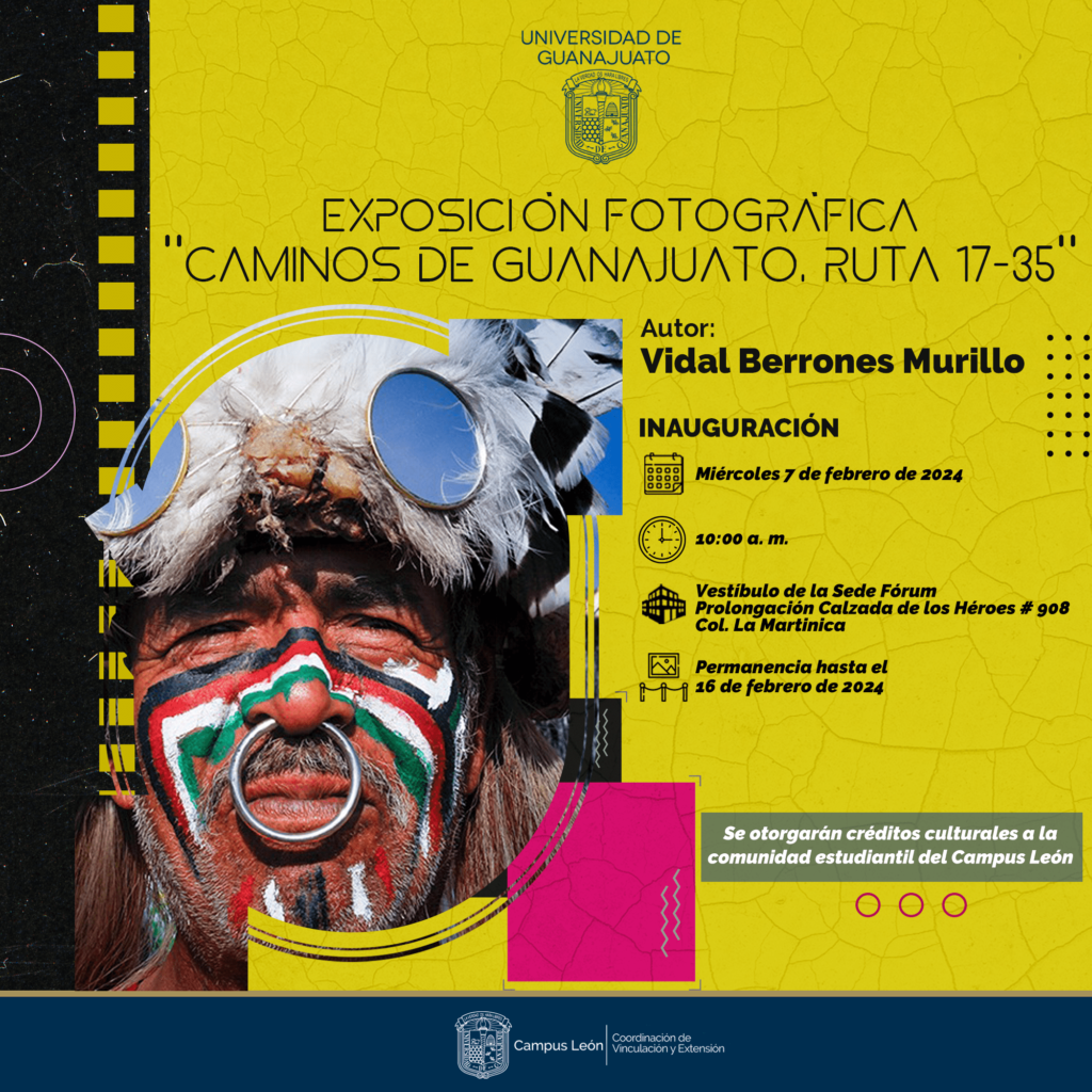 Mientras que en el Campus León se expone “Caminos de Guanajuato, ruta 17-35”, una muestra fotográfica de Vidal Terrones Murillo, la cual permanecerá vigente hasta el 16 de febrero en el Vestíbulo de la sede Fórum, León.