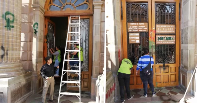 Guanajuato Los daños que afectaron una de las puertas y el exterior del Teatro Juárez, durante la movilización por el Día Internacional de la Mujer, el pasado 8 de marzo … Sigue leyendo Ascienden a 300 mil pesos daños ocasionados al Teatro Juárez
