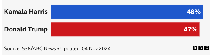 Como se mencionó anteriormente, hay 7 estados clave para definir esta elección. De no haber demoras por contingencias o en la suma de los sufragios, a la media noche del 5 de noviembre e inicios del 6, se sabrá quién será el nuevo presidente de los Estados Unidos de América.