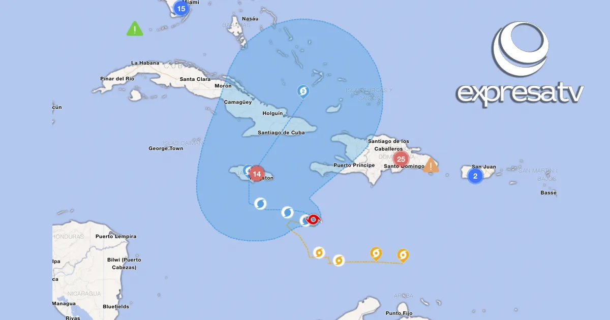 Cuba: Aunque no en la trayectoria central de momento, se mantiene vigilancia y se emitieron alertas de ciclón tropical.