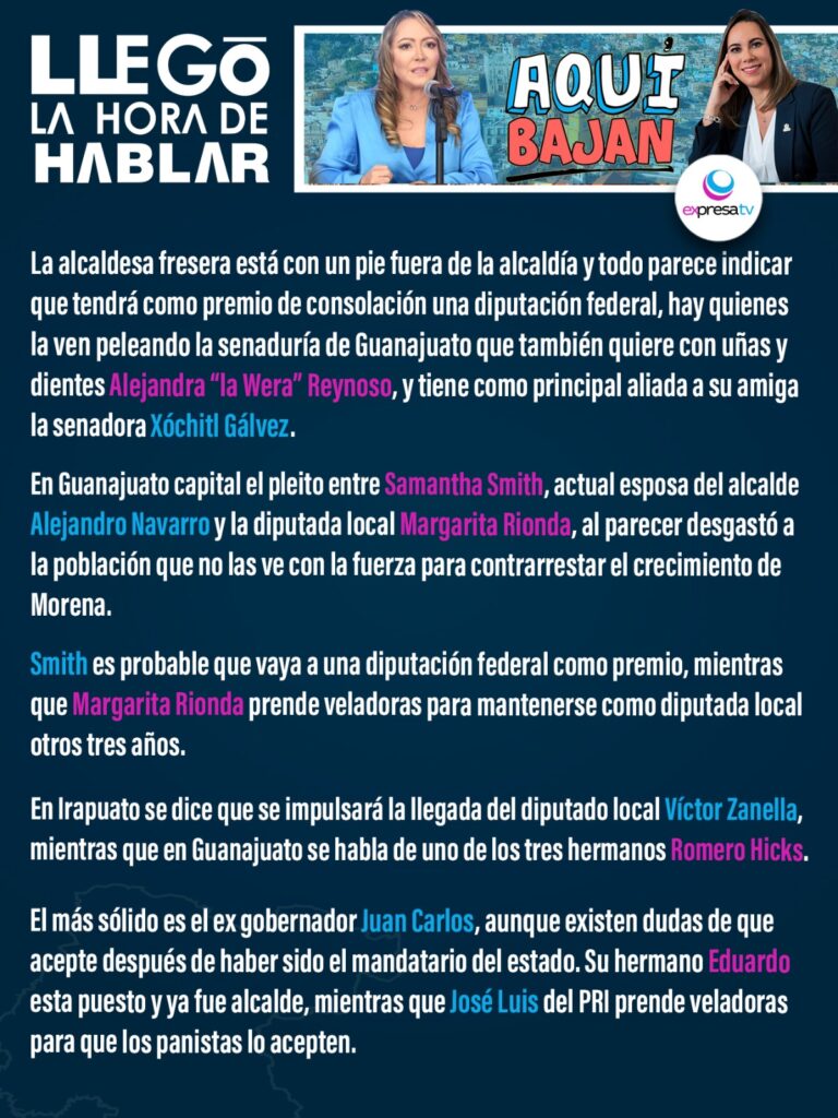 Home Llegó la Hora de HablarBAJAN A LORENA Y ALFARO Y SAMANTHA SMITH | MASCULINIZAN EL CORREDOR Llegó la Hora de Hablar BAJAN A LORENA Y ALFARO Y SAMANTHA SMITH | MASCULINIZAN EL CORREDOR by Redacción 2 años ago by Redacción Published: 7 noviembre, 2023Updated: 8 noviembre, 2023 0 minutes read Bookmark A+A- Reset Share 0FacebookTwitterWhatsappCopy LinkThreads 10 previous post Tras 27 años de militancia renuncia Yulma Rocha Aguilar al PRI next post Amanece clínica del IMSS afectada por fuga de agua potable You may also like Bookmark Celaya lo consiguió en un año 4 semanas ago Bookmark Se queda sin alcaldes Alejandra 1 mes ago Bookmark Conclave con Jorge Romero en León 1 mes ago Leave a Comment Cancel Reply Save my name, email, and website in this browser for the next time I comment.