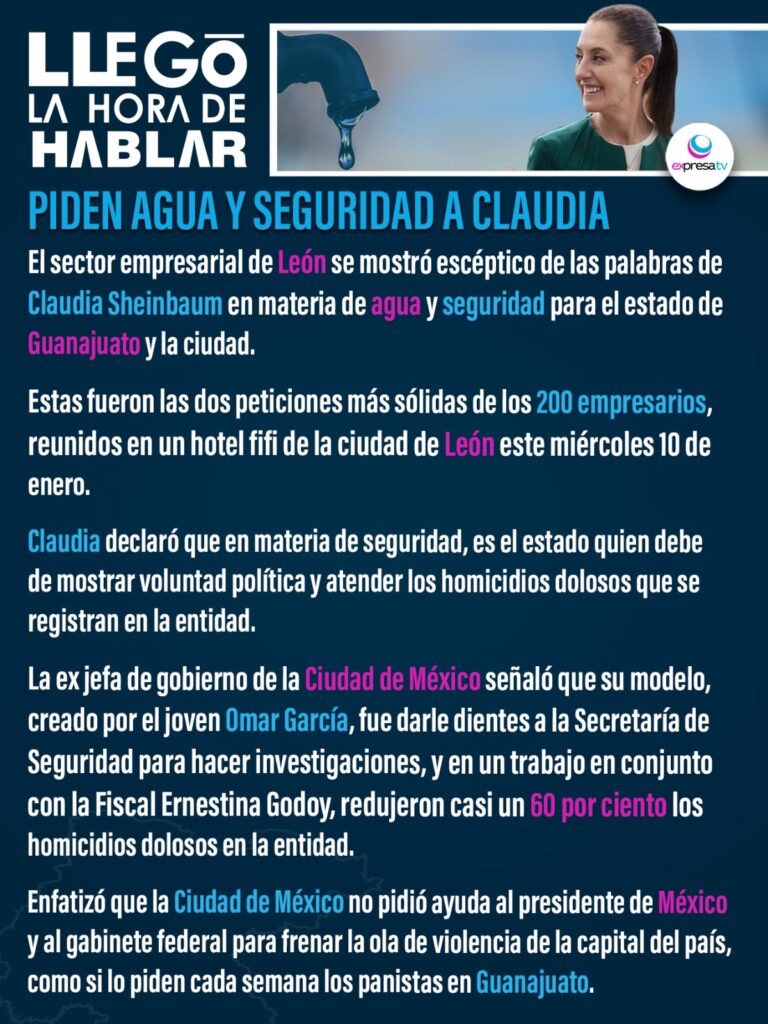 Home Llegó la Hora de HablarEMPRESARIOS PIDEN AGUA Y SEGURIDAD A SHEINBAUM Llegó la Hora de Hablar EMPRESARIOS PIDEN AGUA Y SEGURIDAD A SHEINBAUM by Redacción 2 años ago by Redacción 2 años ago 0 minutes read Bookmark A+A- Reset Share 0FacebookTwitterWhatsappCopy LinkThreads 6 previous post Celaya obtuvo casi 3 mil mdp en inversiones durante 2023 next post Presentan a Mauricio Estefanía como precandidato en Cortazar You may also like Bookmark Celaya lo consiguió en un año 4 semanas ago Bookmark Se queda sin alcaldes Alejandra 1 mes ago Bookmark Conclave con Jorge Romero en León 1 mes ago Leave a Comment Cancel Reply Save my name, email, and website in this browser for the next time I comment.