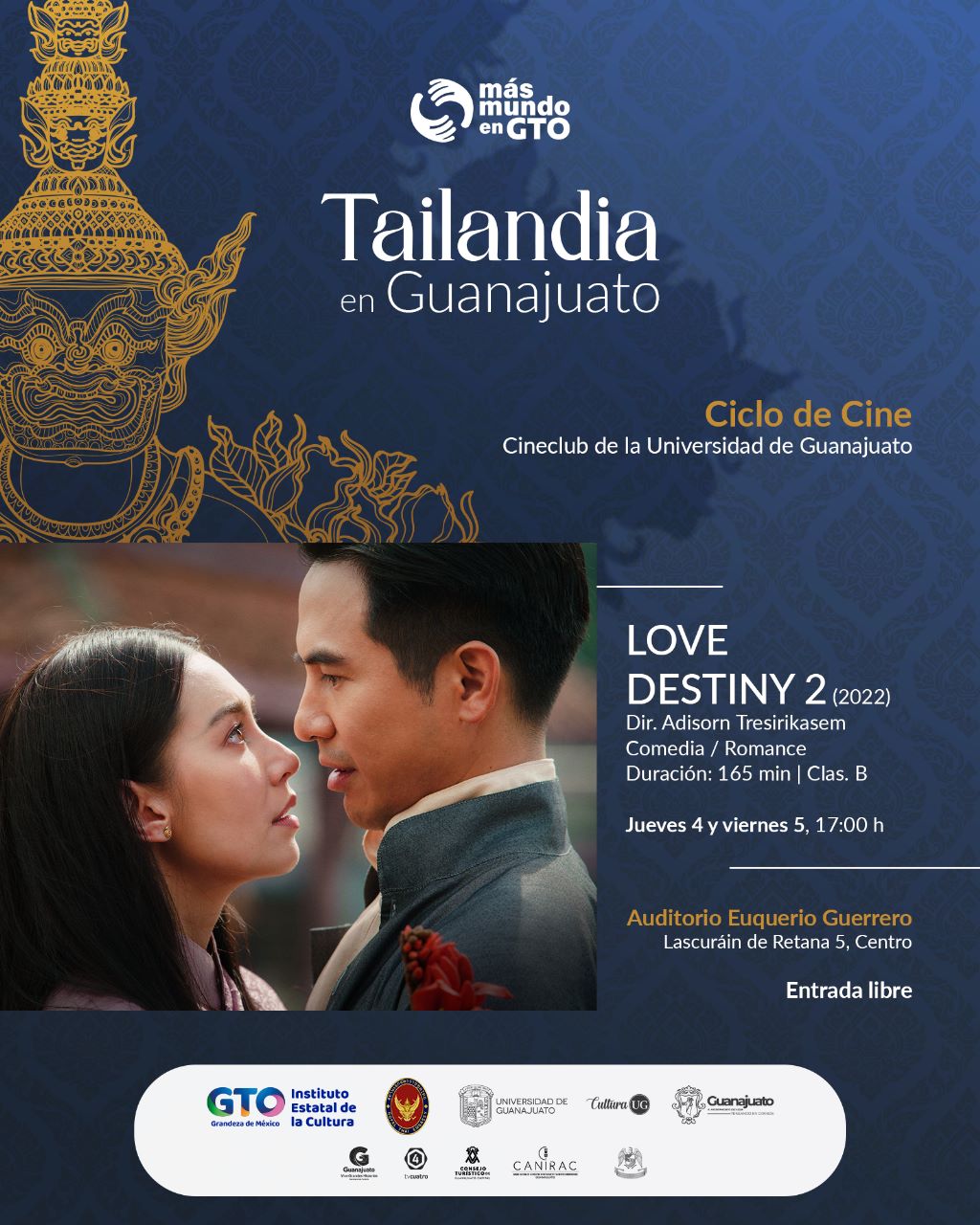 Para iniciar Cine Club de la UG proyectará el próximo cuatro y cinco de mayo la cinta “Love destiny 2”, del director Adisorn Tresirikasem. Esta actividad forma parte del programa “Más mundo en Guanajuato” y se podrá disfrutar en el Auditorio Euquerio Guerrero a las 17:00 horas. La entrada será libre.