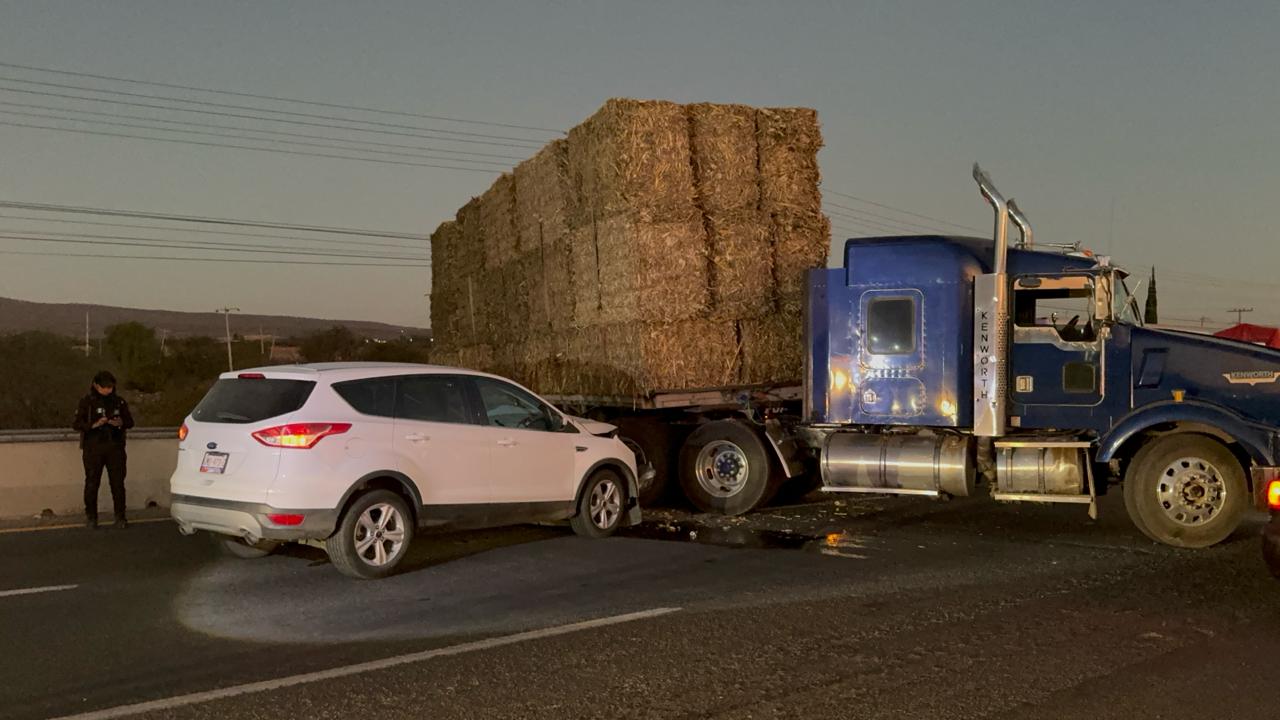 El suceso ocurrió minutos después de las 6:00 am, cuando un tráiler que transportaba pacas de alfalfa bloqueó tres de los cuatro carriles de ambos sentidos al utilizar un retorno de manera inapropiada.