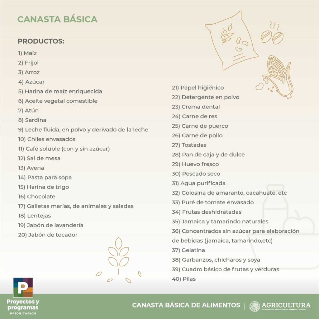 Con el objetivo de garantizar la seguridad alimentaria; el Gobierno de México tiene un estándar de productos de primera necesidad para garantizar que las familias mexicanas tengan lo necesario para vivir.