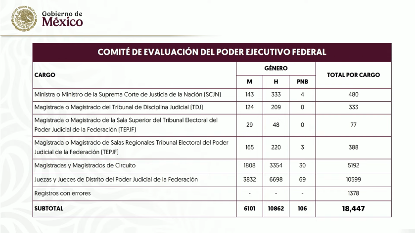 - Del Poder Ejecutivo se inscribieron ante el Comité de Evaluación un total de 18 mil 447 personas.