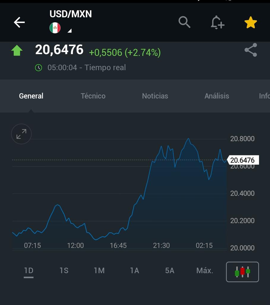 El portal El Economista señala que el tipo de cambio spot se ubica en 20.6136 pesos por dólar. Comparado con un registro de cierre de 20.0788 pesos ayer.