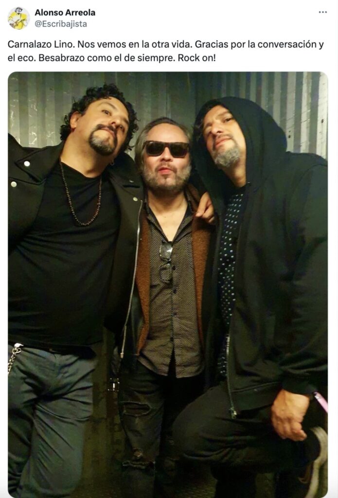 “Carnalazo, Lino. Nos vemos en la otra vida. Gracias por la conversación y el eco. Besabrazo como él siempre. ¡Rock on!”