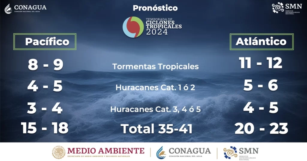 El organismo recordó que estos fenómenos que se forman en alta mar y en su desplazamiento llegan hasta las costas mexicanas y también generan las lluvias de la temporada, que se espera sean superiores a las ocurridas en los años 2022 y 2023.