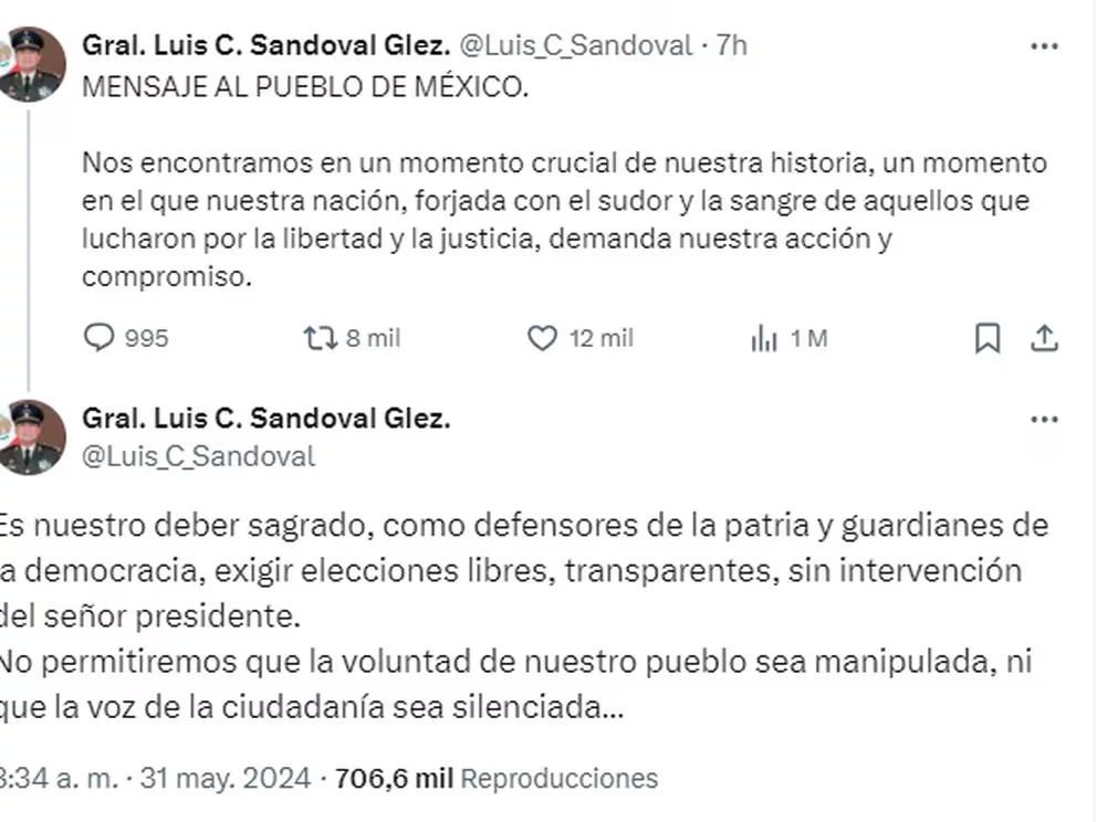 Tras el cierre oficial de la cuenta @Luis_C_Sandoval en 2023, un usuario aprovechó que el nombre estaba libre, para compartir un hilo de mensajes sobre el actual proceso electoral.