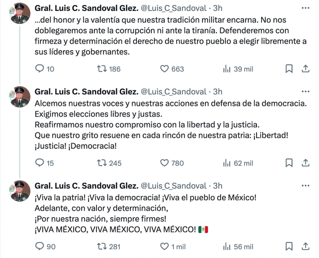 Este viernes, un mensaje falso del Secretario de la Defensa Nacional (SEDENA) Luis Cresencio Sandoval, se hizo viral a través de la red social X.