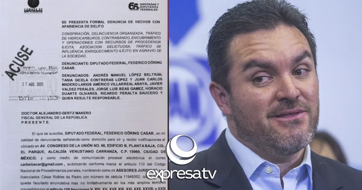 Ahora, el diputado federal del Partido Acción Nacional (PAN), Federico Döring Casar, presentó una denuncia formal ante la Fiscalía General de la República (FGR). En el documento se señala a Andrés Manuel López Beltrán hijo del expresidente López Obrador, Tania Gisela Contreras, Juan Carlos Madero, Américo Villarreal, Javier Valdez Perales, Jorge Luis Beas Gámez, Horacio Duarte Olivares, Ricardo Peralta Saucedo.