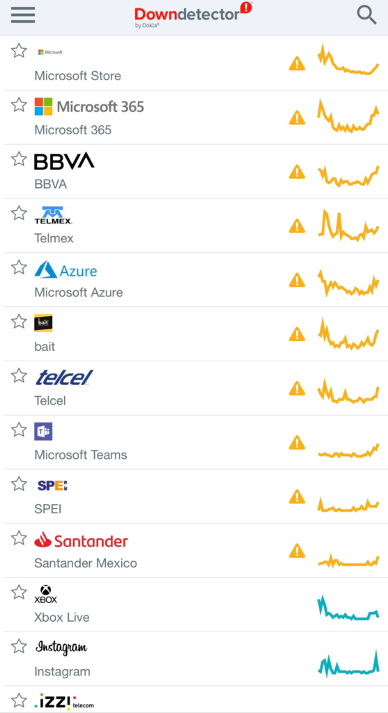 En cuanto al impacto en México, el AIFA reconoció inconvenientes por el fallo de sistemas informáticos e incomodidad en los pasajeros por sus vuelos en líneas como VivaAerobus y Volaris. Asimismo, se podrían esperar fallas en aplicaciones bancarias como Santander y BBVA.
